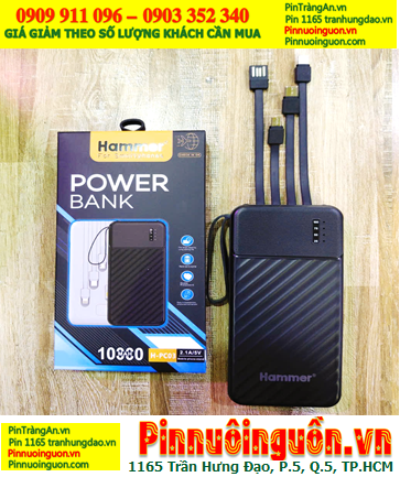 HAMMER H-PC03 PowerBank, Pin dự phòng HAMMER H-PC03 chuẩn 10.000mAh (5V/2.1A, có ĐÈN, 04 dây cáp)
